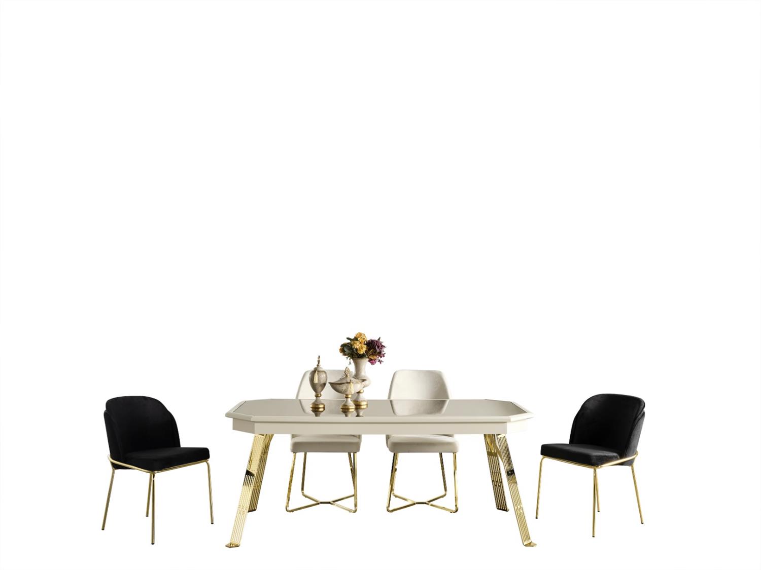 Yemek Masası Üst tabla MDF malzeme üzeri lake boya ile üretilmiştir. Masa tablası ortadan açılabilir özelliğe sahip değildir.