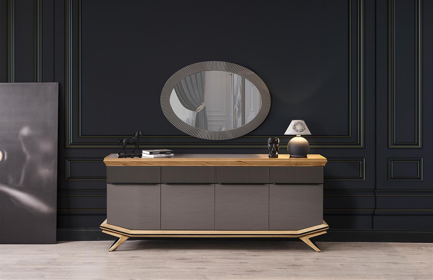 Ürün İçeriği 1 Adet Konsol ve Aynası, 1 Adet Yemek Masası ve 6 Adet Sandalye'den oluşmaktadır.