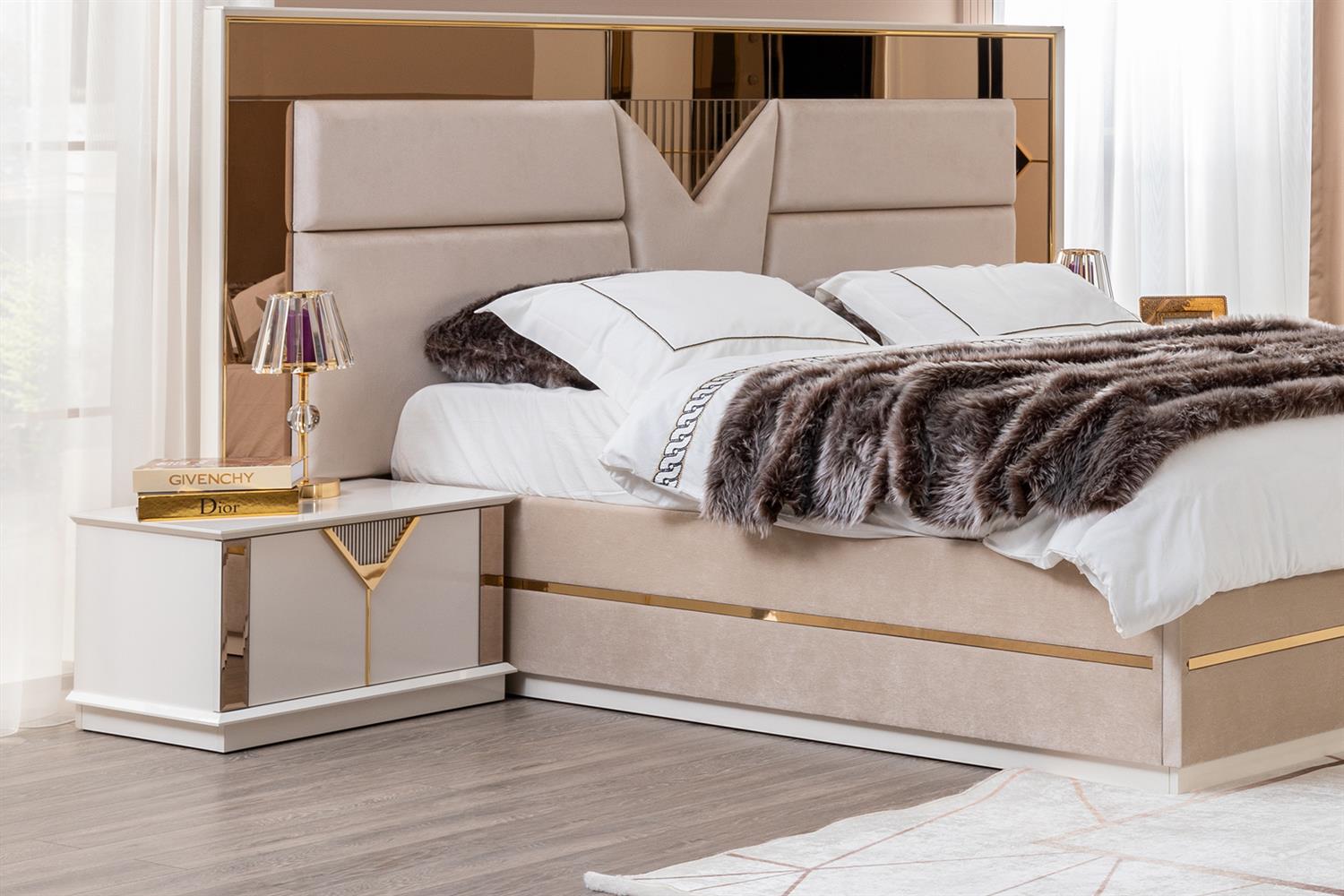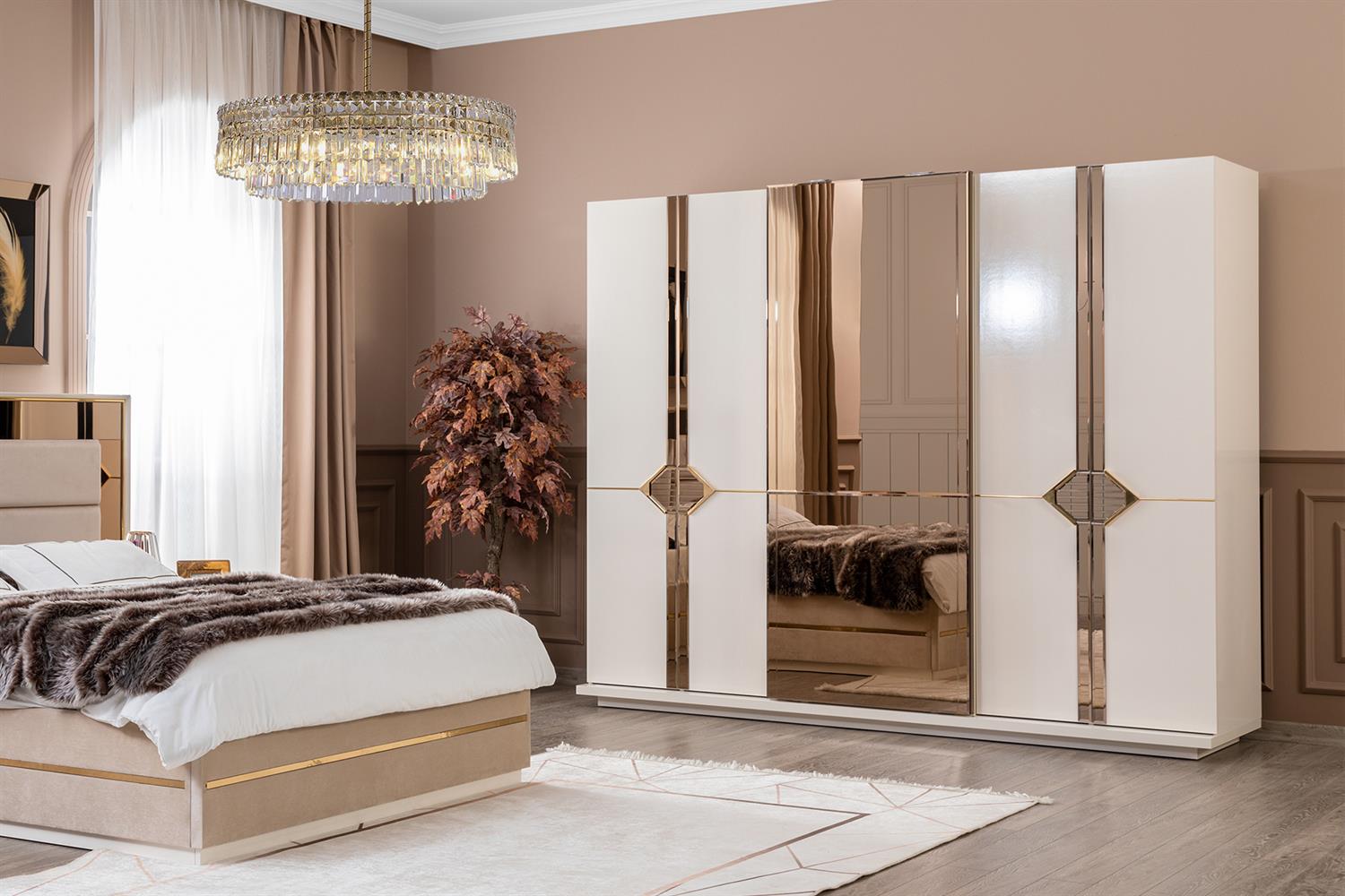 Ürün İçeriği 1 Adet Gardırop, 1 Adet Karyola ve Başlığı, 2 Adet Komodin, 1 Adet Şifonyer ve Aynasından oluşmaktadır.