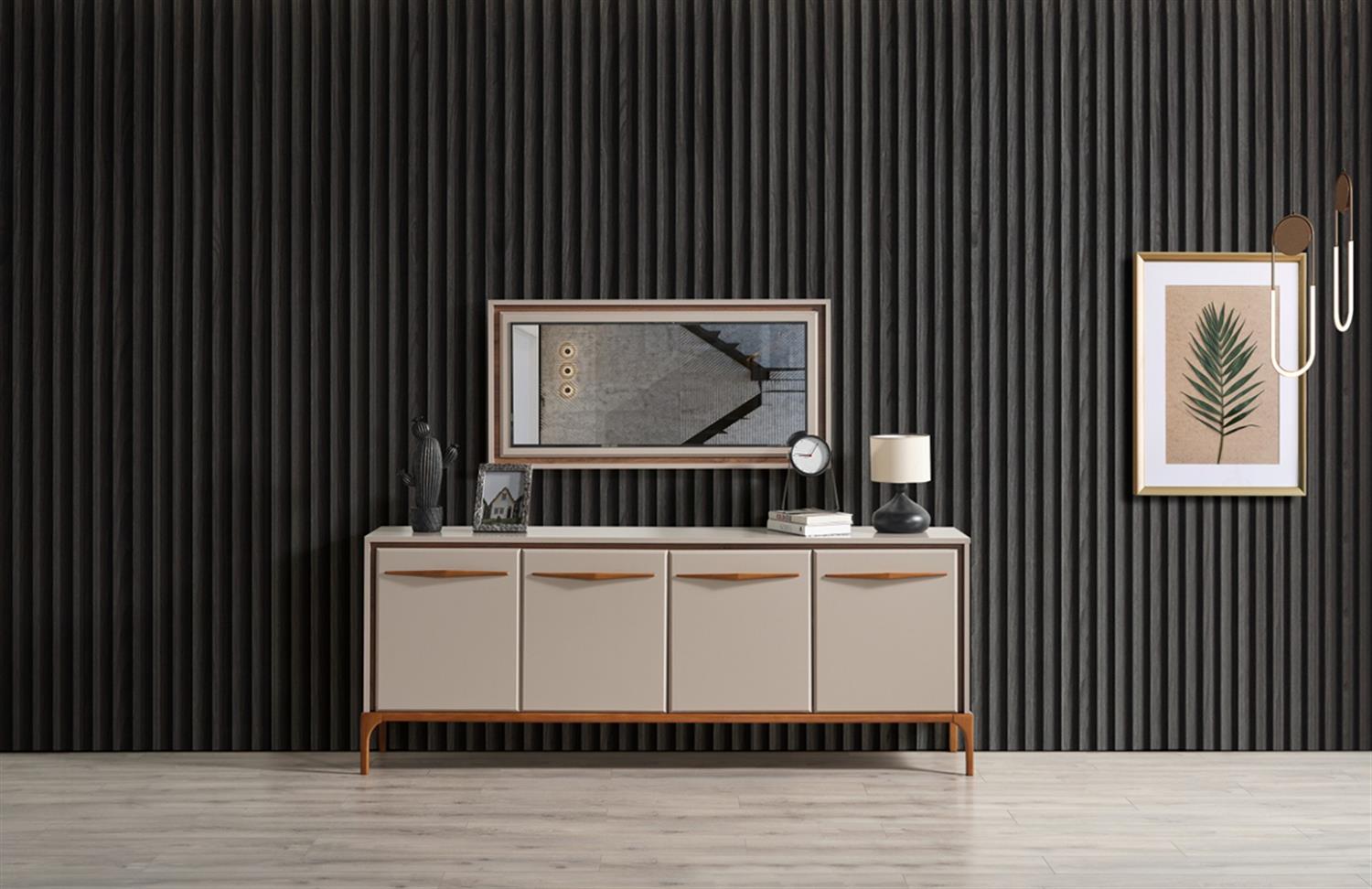 Ürün İçeriği 1 Adet Konsol ve Aynası, 1 Adet Yemek Masası ve 6 Adet Sandalye'den oluşmaktadır.