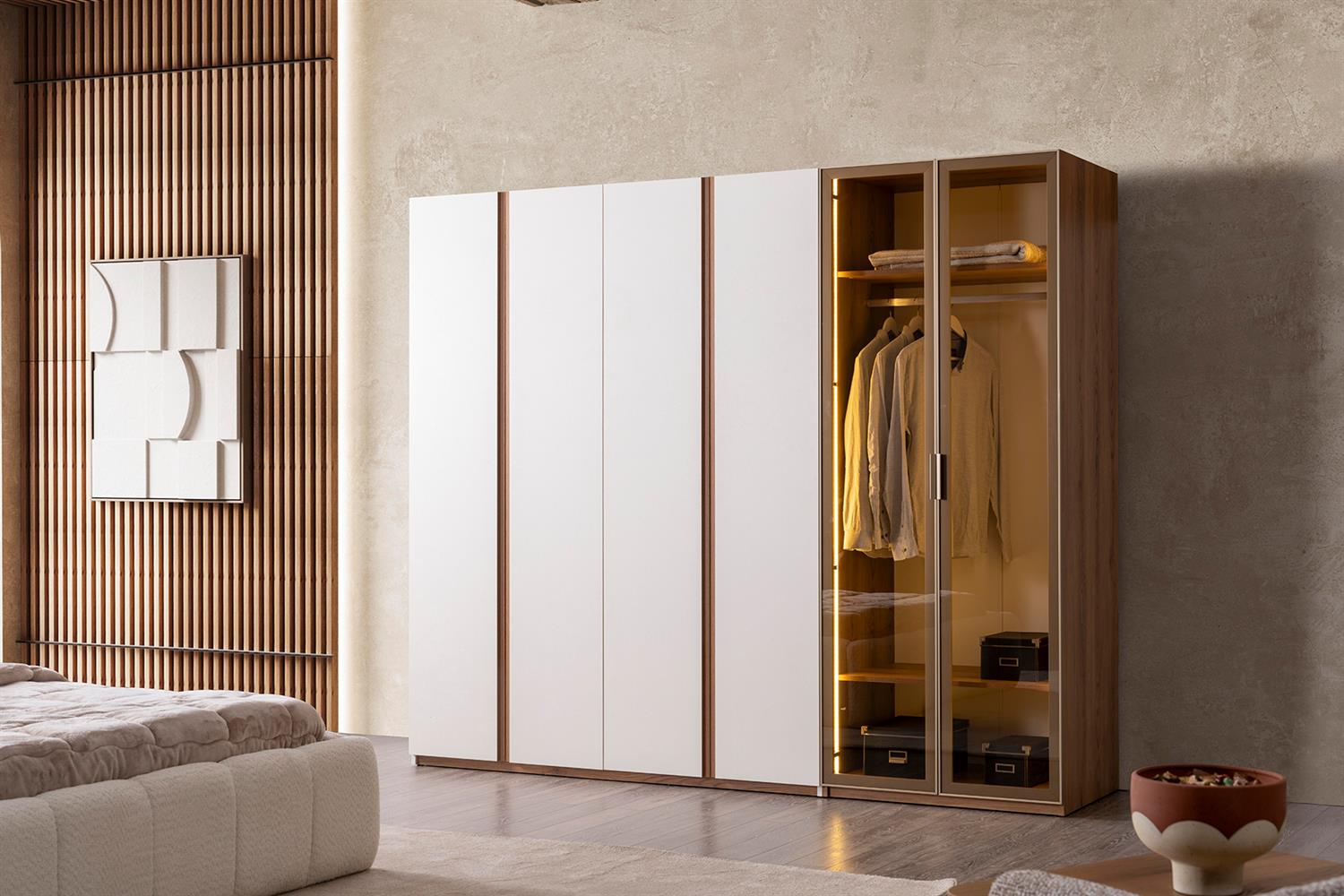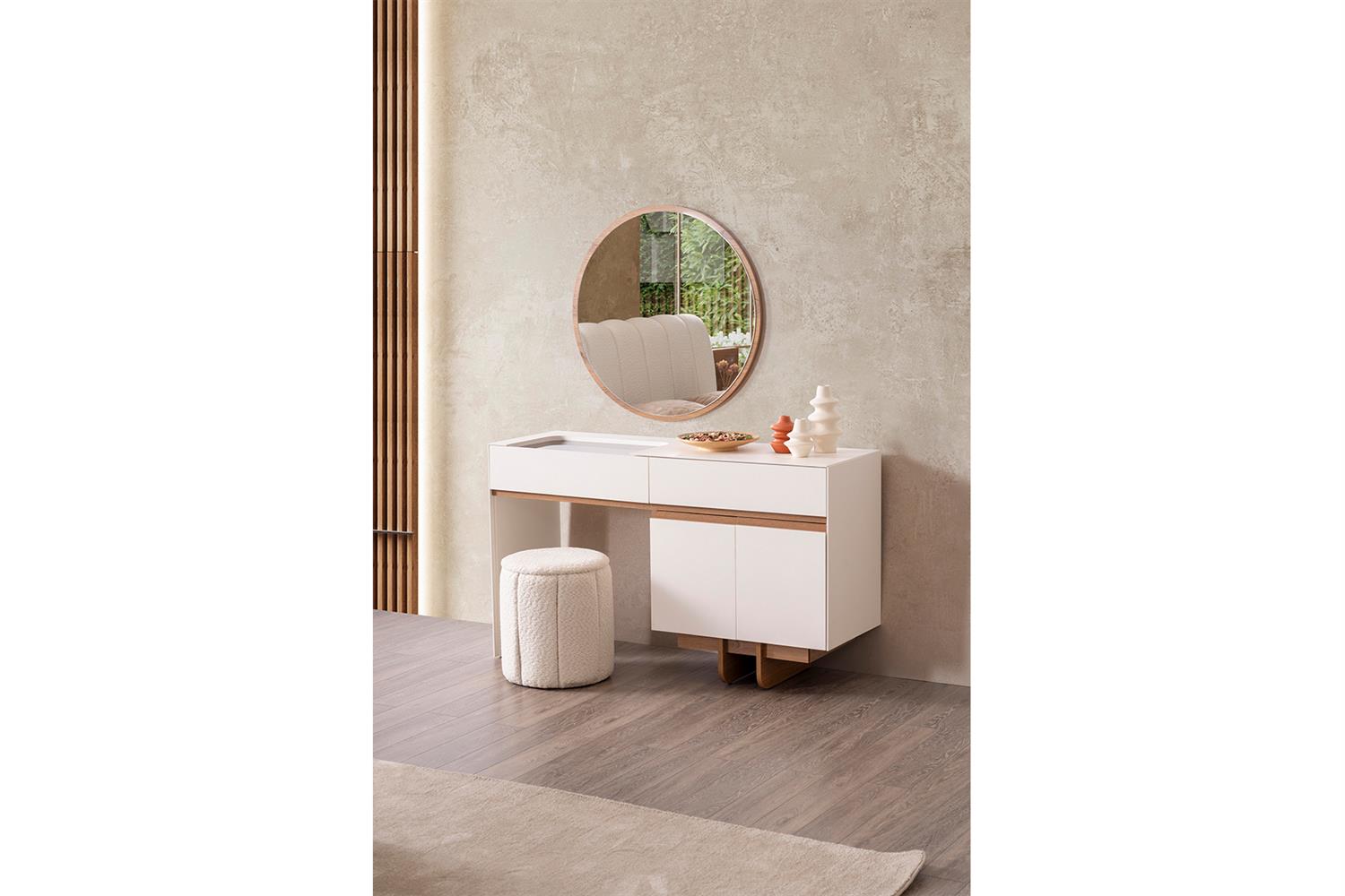 Ürün İçeriği 1 Adet Gardırop, 1 Adet Karyola ve Başlığı, 2 Adet Komodin, 1 Adet Şifonyer ve Aynasından oluşmaktadır.