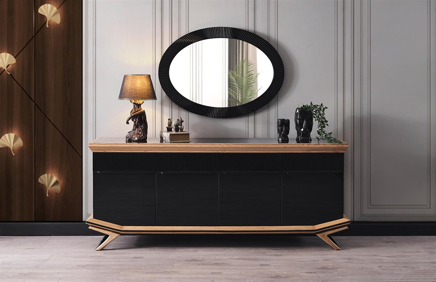Ürün İçeriği 1 Adet Konsol ve Aynası, 1 Adet Yemek Masası ve 6 Adet Sandalye'den oluşmaktadır.