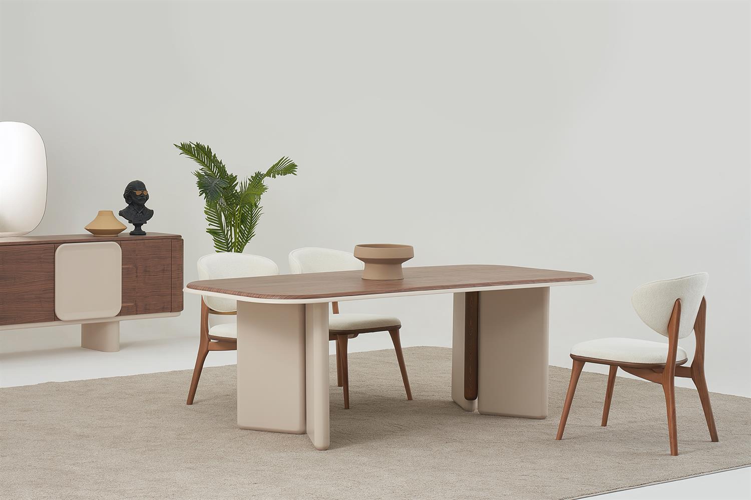 Ürün İçeriği 1 Adet Konsol ve Aynası, 1 Adet Yemek Masası ve 6 Adet Sandalye'den oluşmaktadır.
