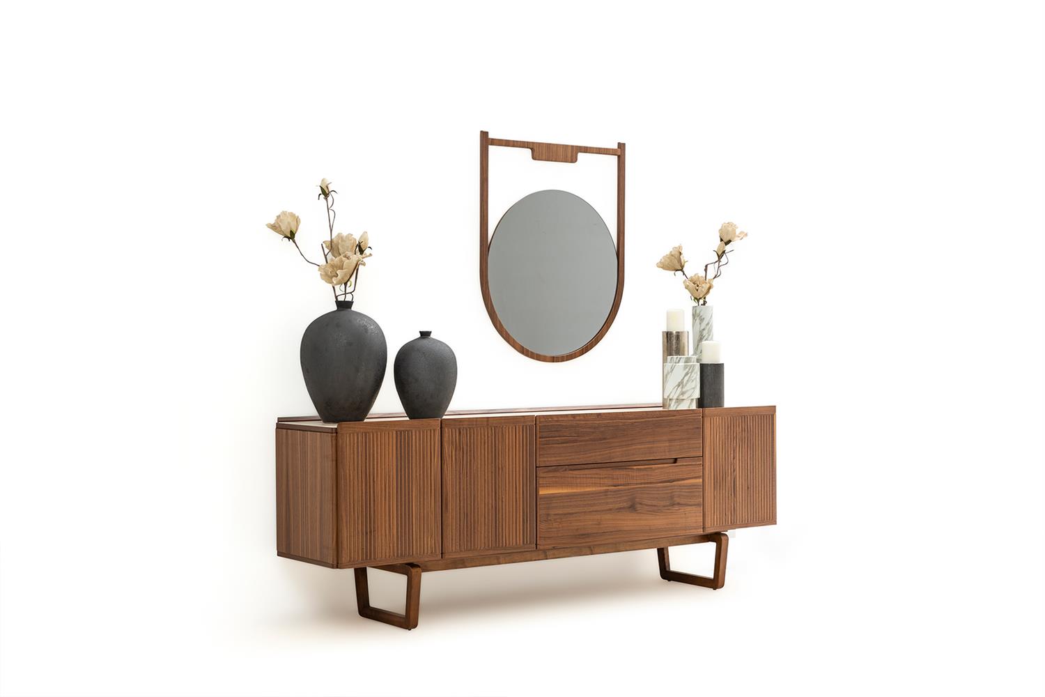 Ürün İçeriği 1 Adet Konsol ve Aynası, 1 Adet Yemek Masası ve 6 Adet Sandalye'den oluşmaktadır.