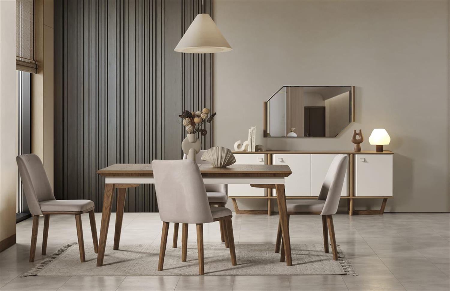 Ürün İçeriği 1 Adet Konsol ve Aynası, 1 Adet Yemek Masası ve 6 Adet Sandalye'den oluşmaktadır.