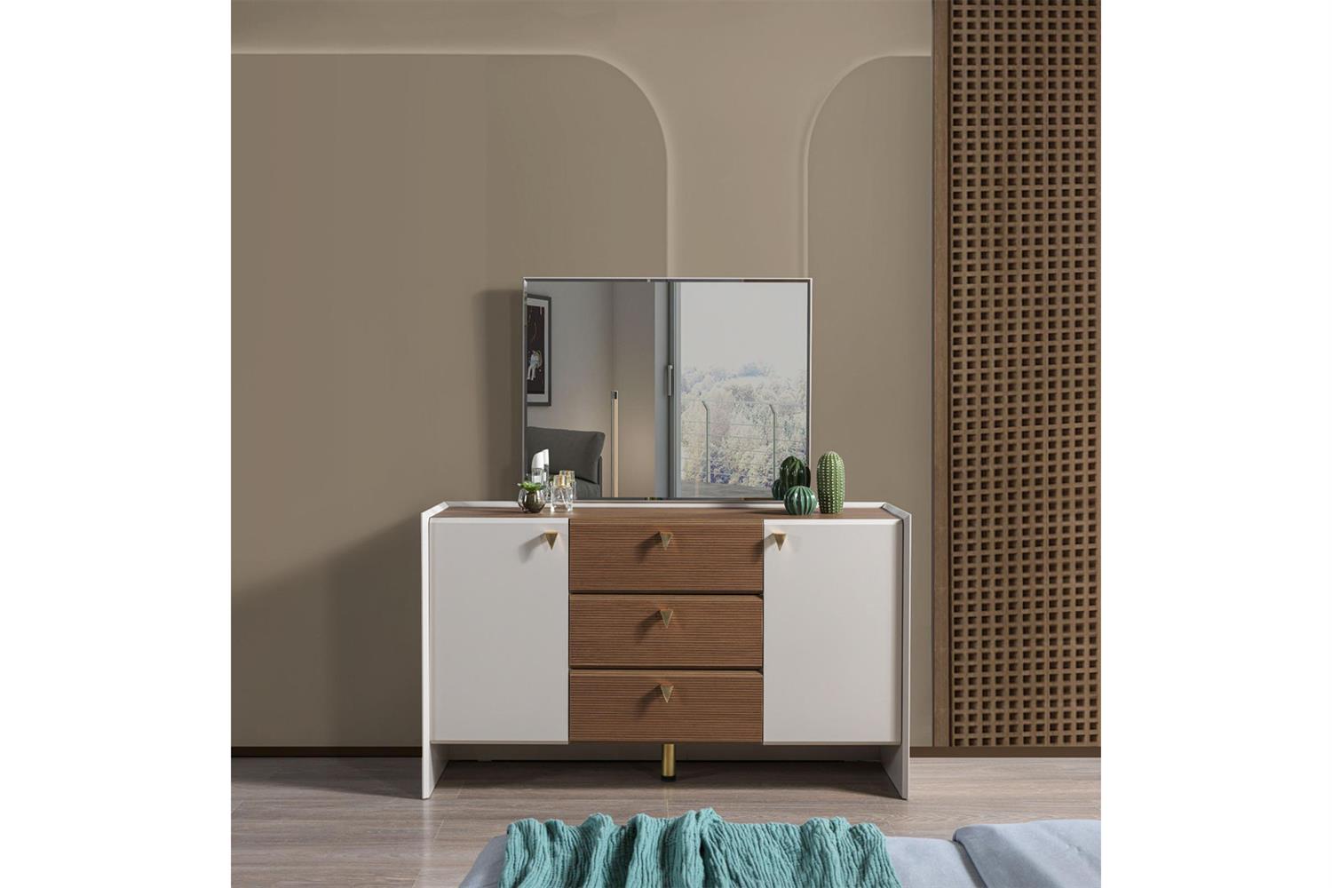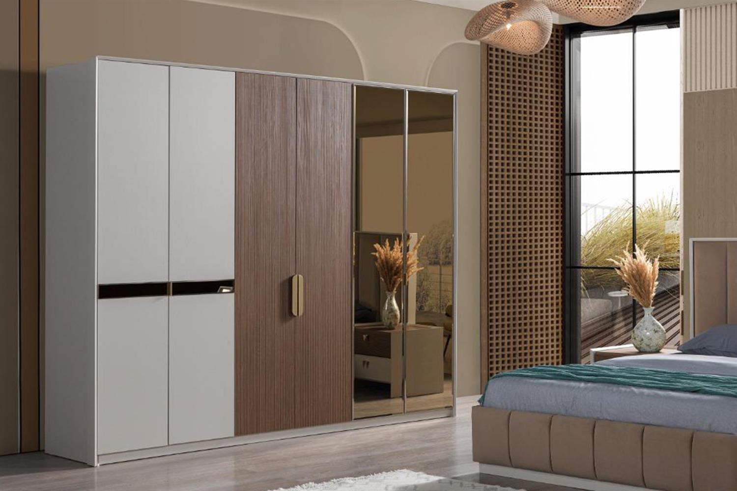 Ürün İçeriği 1 Adet Gardırop, 1 Adet Karyola ve Başlığı, 2 Adet Komodin, 1 Adet Şifonyer ve Aynasından oluşmaktadır.