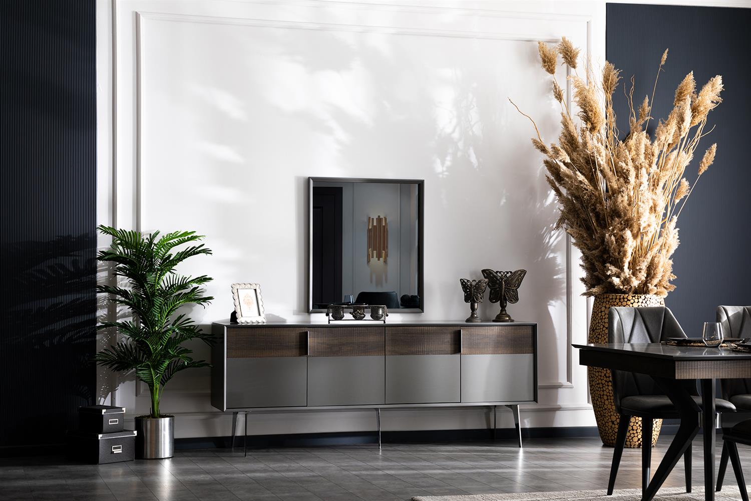 Ürün İçeriği 1 Adet Konsol ve Aynası, 1 Adet Yemek Masası ve 6 Adet Sandalye'den oluşmaktadır.