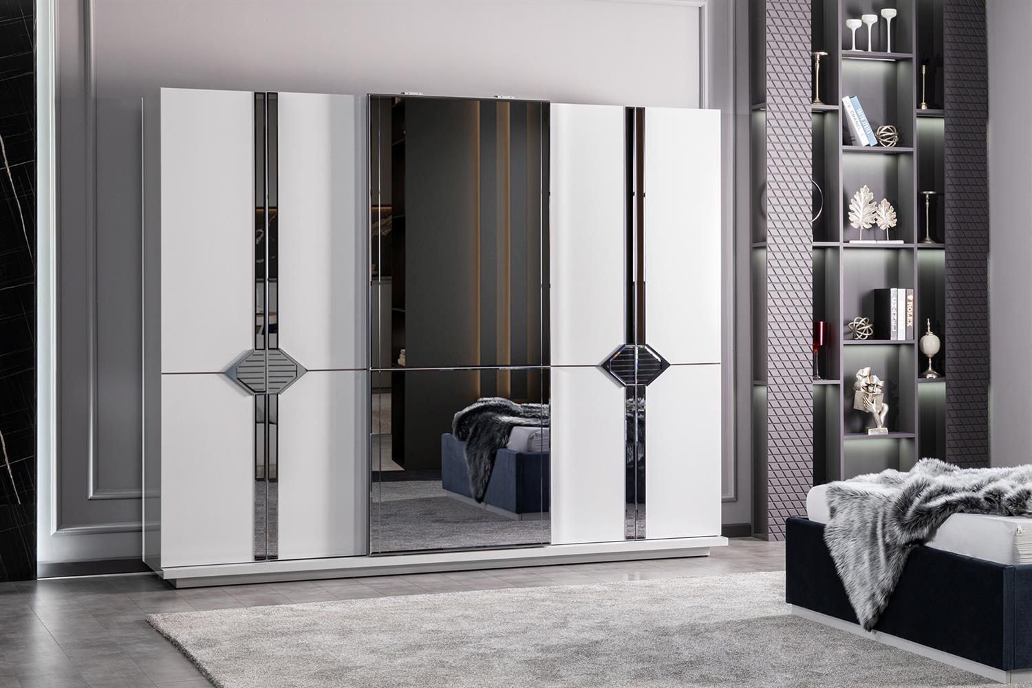 Ürün İçeriği 1 Adet Gardırop, 1 Adet Karyola ve Başlığı, 2 Adet Komodin, 1 Adet Şifonyer ve Aynasından oluşmaktadır.