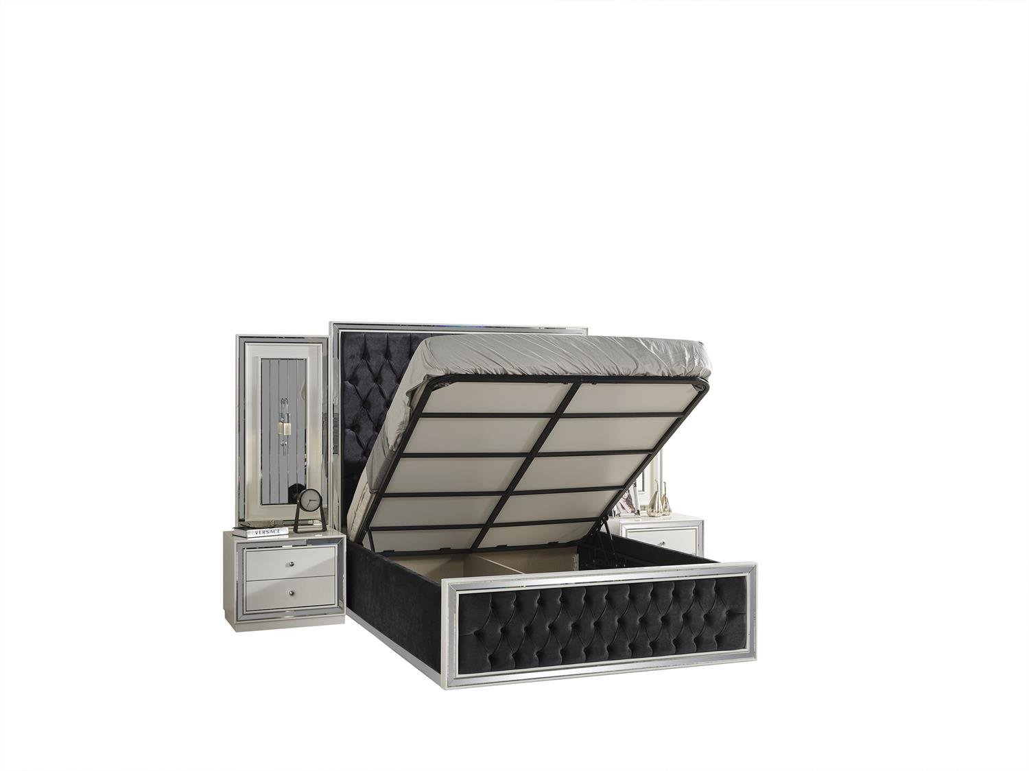 Bed It is produced with lacquered paint on MDF material. The bed size is 160x200 cm. The bed does not have a box base. It can be made with a base upon request.