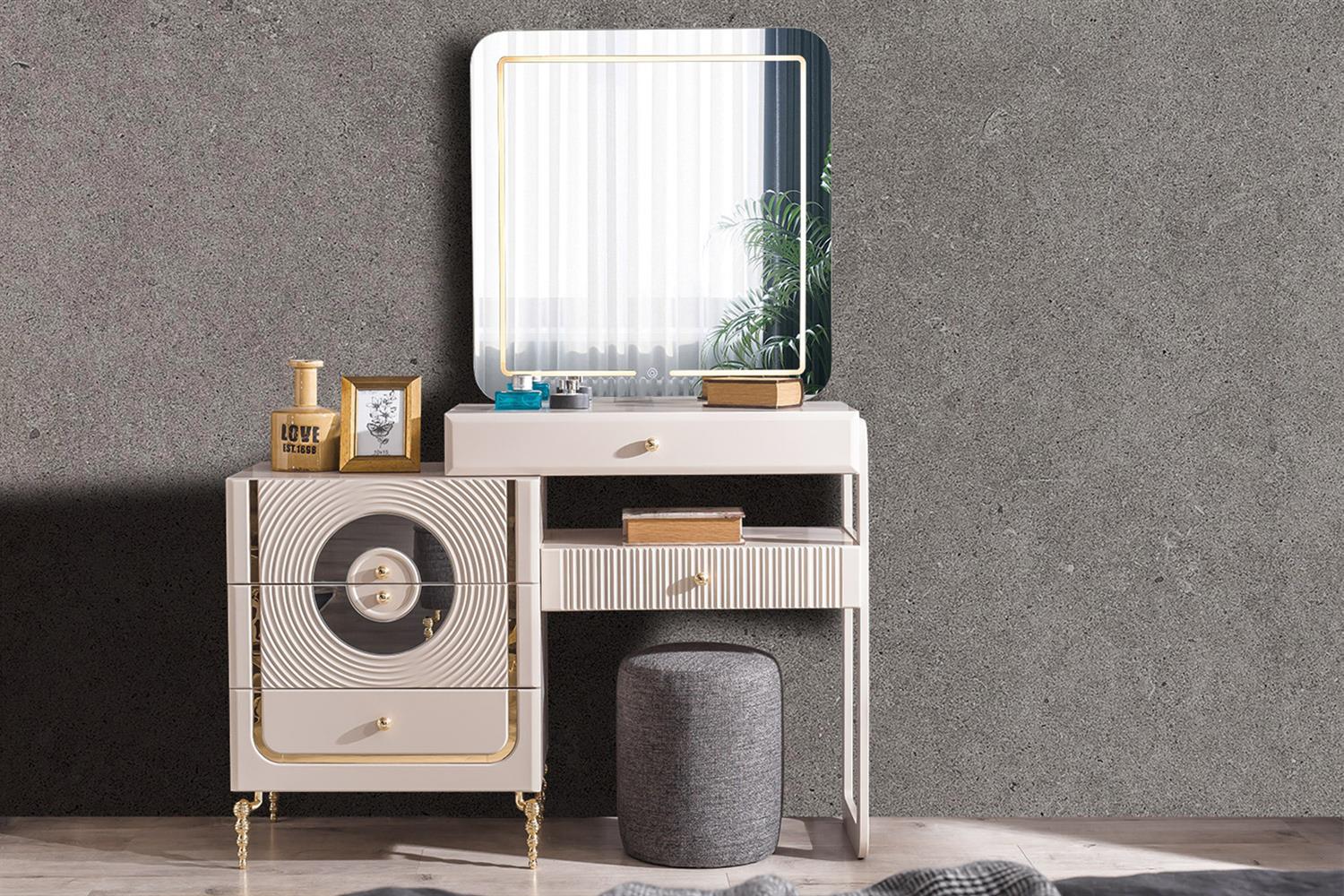 Ürün İçeriği 1 Adet Gardırop, 1 Adet Karyola ve Başlığı, 2 Adet Komodin, 1 Adet Şifonyer ve Aynasından oluşmaktadır.