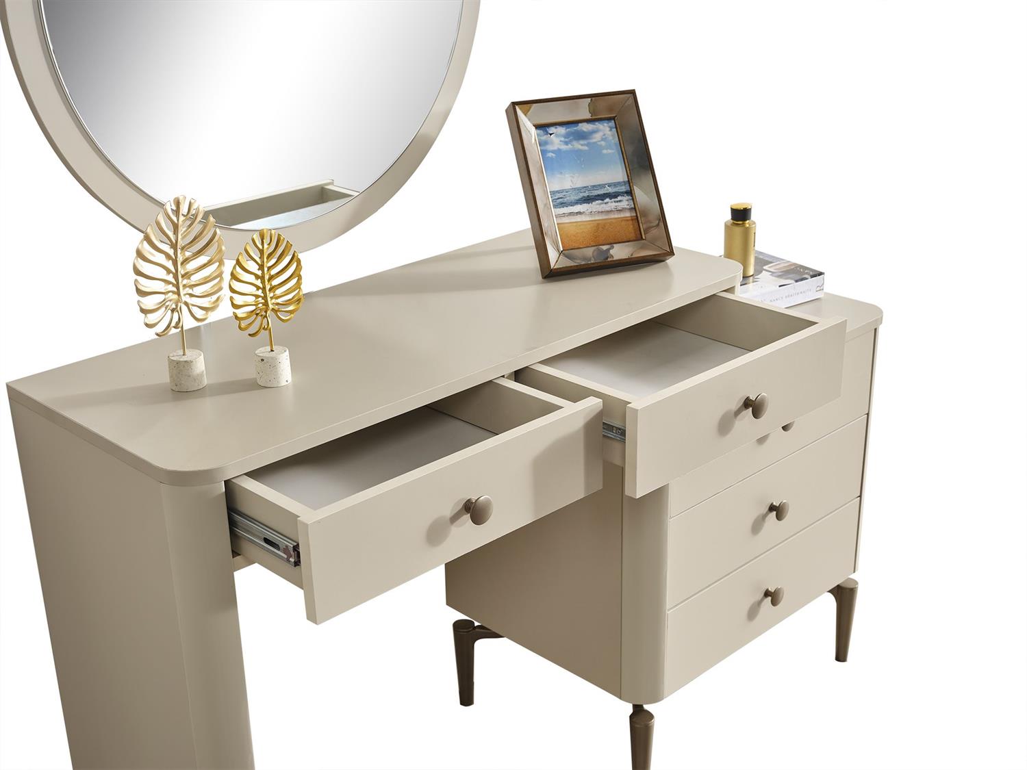 Dresser Produced with lacquer paint on MDF material. Decorated with CNC patterns. Retarding tandem rails are used in the drawers.