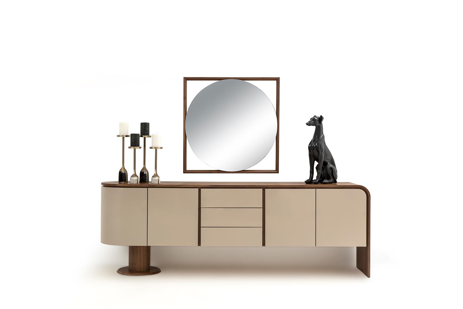 Ürün İçeriği 1 Adet Konsol ve Aynası, 1 Adet Yemek Masası ve 6 Adet Sandalye'den oluşmaktadır.