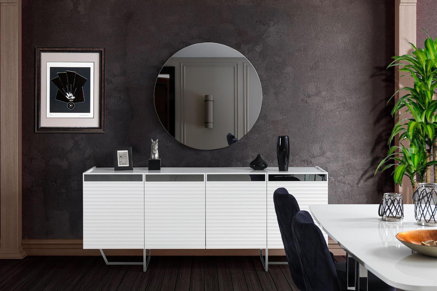 Ürün İçeriği 1 Adet Konsol ve Aynası, 1 Adet Yemek Masası ve 6 Adet Sandalye'den oluşmaktadır.