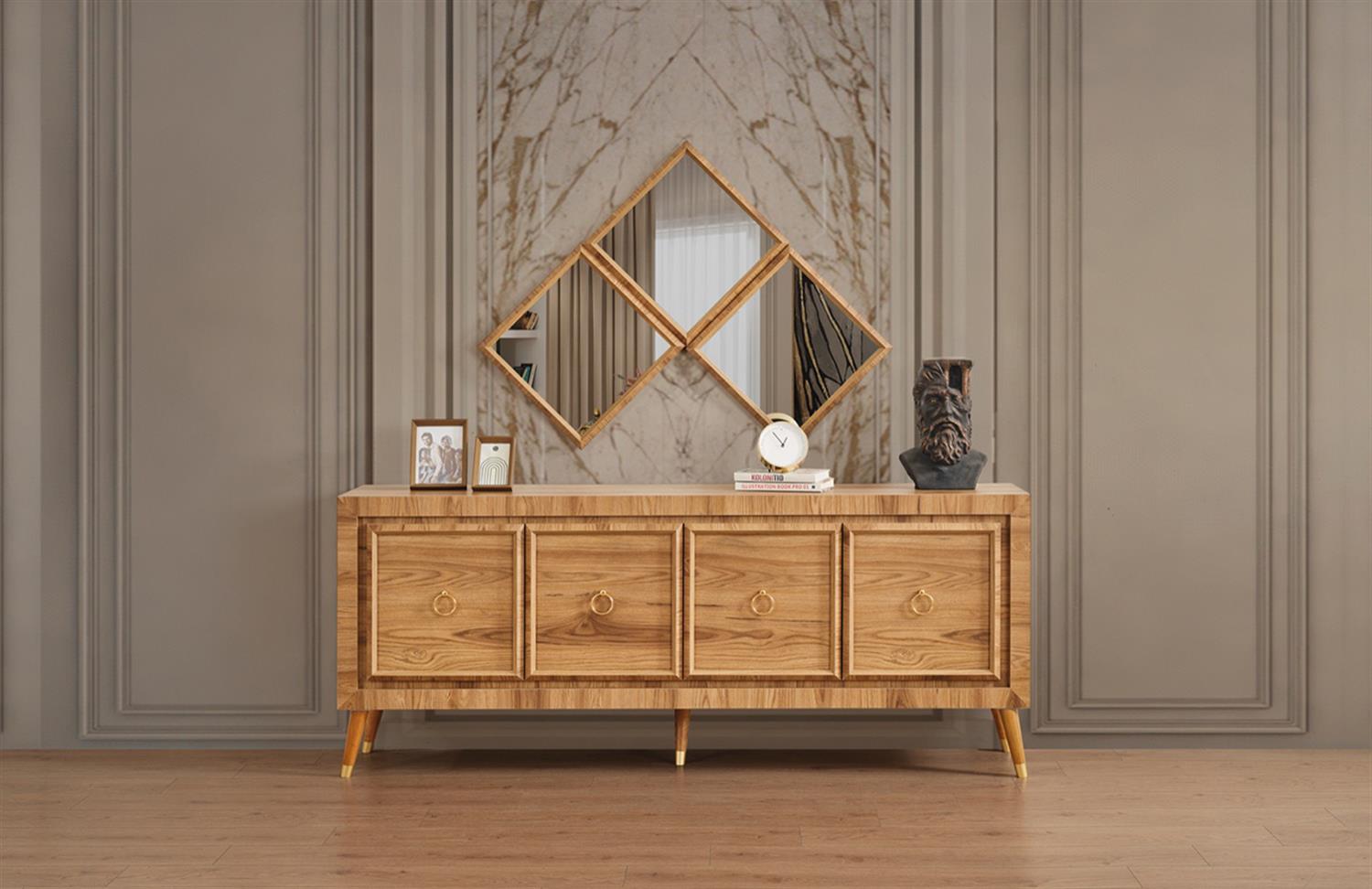 Ürün İçeriği 1 Adet Konsol ve Aynası, 1 Adet Yemek Masası ve 6 Adet Sandalye'den oluşmaktadır.