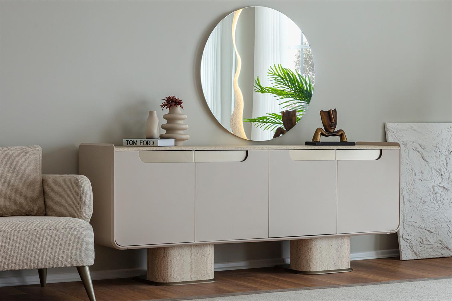 Ürün İçeriği 1 Adet Konsol ve Aynası, 1 Adet Yemek Masası ve 6 Adet Sandalye'den oluşmaktadır.