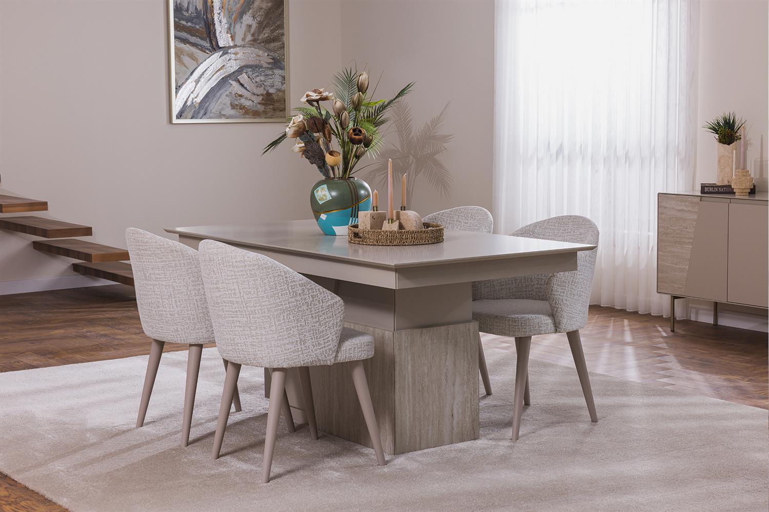 Ürün İçeriği 1 Adet Konsol ve Aynası, 1 Adet Yemek Masası ve 6 Adet Sandalye'den oluşmaktadır.