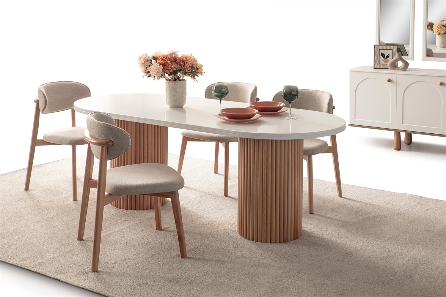 Ürün İçeriği 1 Adet Konsol ve Aynası, 1 Adet Yemek Masası ve 6 Adet Sandalye'den oluşmaktadır.