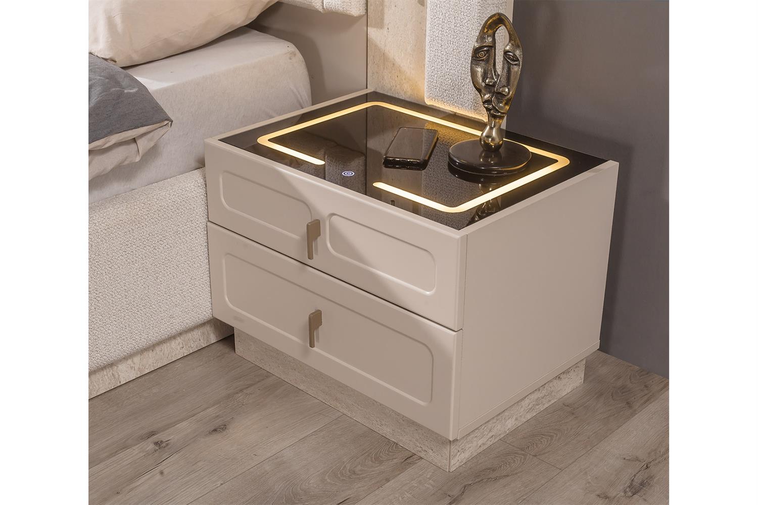 Ürün İçeriği 1 Adet Gardırop, 1 Adet Karyola ve Başlığı, 2 Adet Komodin, 1 Adet Şifonyer ve Aynasından oluşmaktadır.