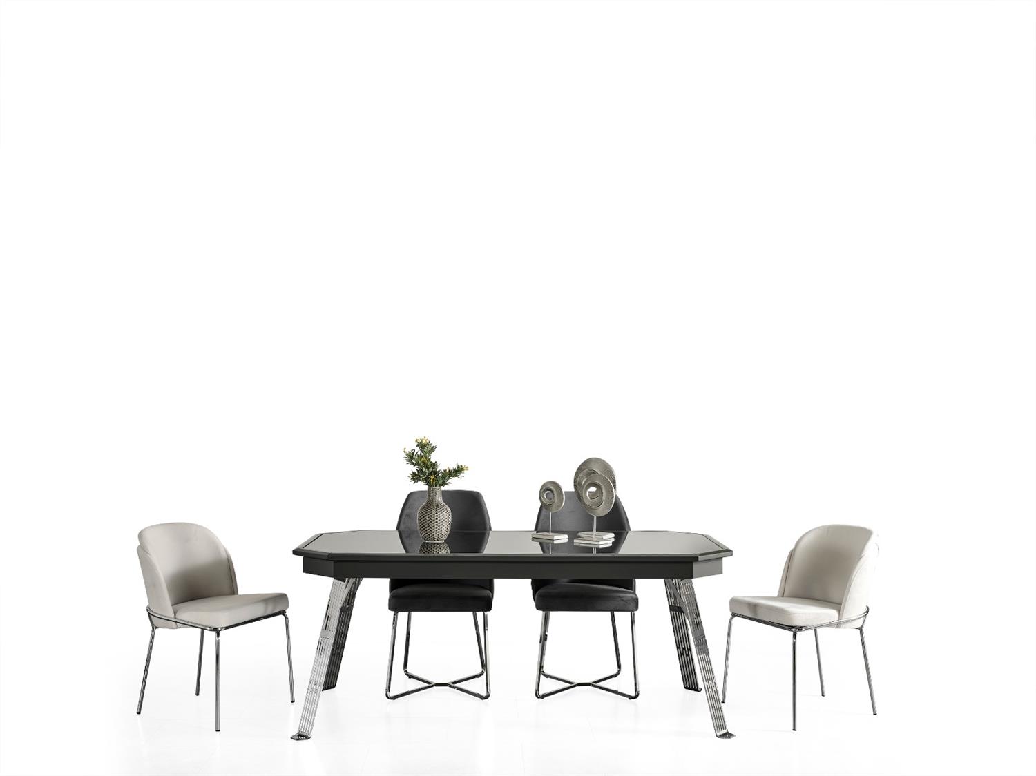 Yemek Masası Üst tabla MDF malzeme üzeri lake boya ile üretilmiştir. Masa tablası ortadan açılabilir özelliğe sahip değildir.