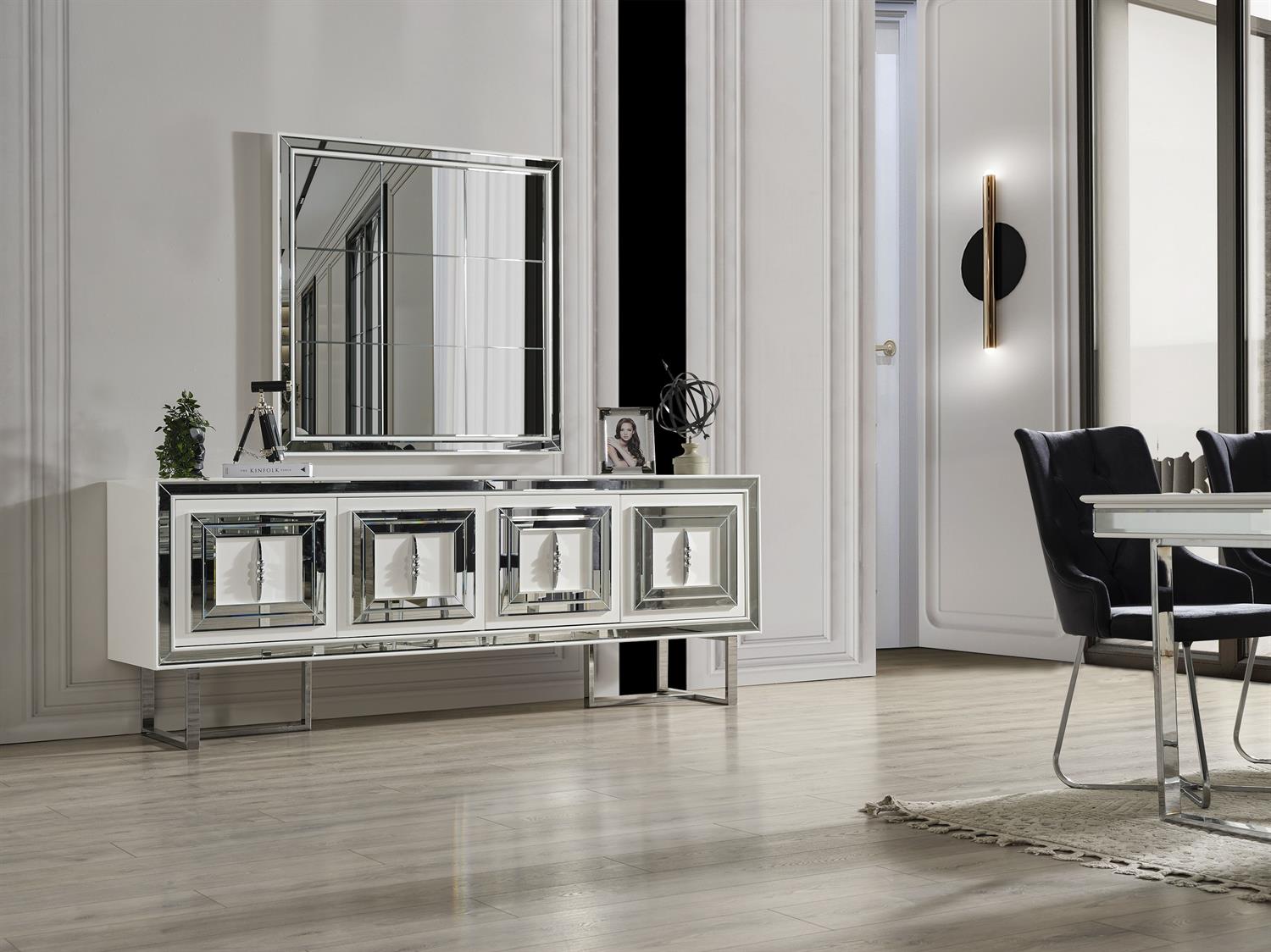 Ürün İçeriği 1 Adet Konsol ve Aynası, 1 Adet Yemek Masası, 6 Adet Sandalyeden Oluşmaktadır. Tv Ünitesi ve Orta Sehpa Opsiyonel Olarak Satışa Sunulmuştur.