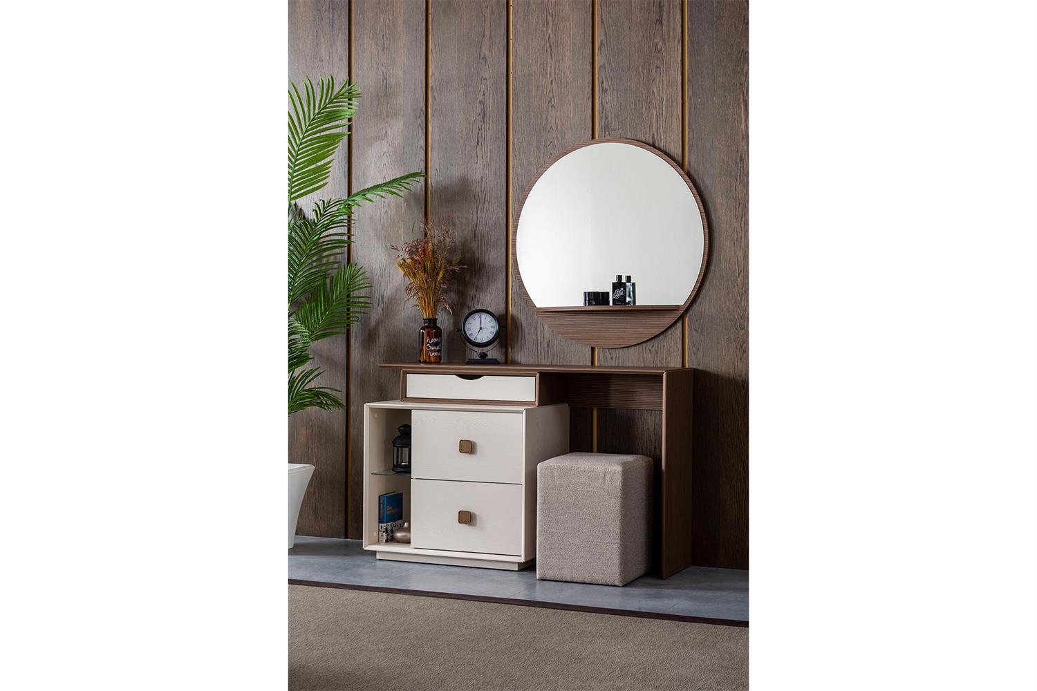 Ürün İçeriği 1 Adet Gardırop, 1 Adet Karyola ve Başlığı, 2 Adet Komodin, 1 Adet Şifonyer ve Aynasından oluşmaktadır.